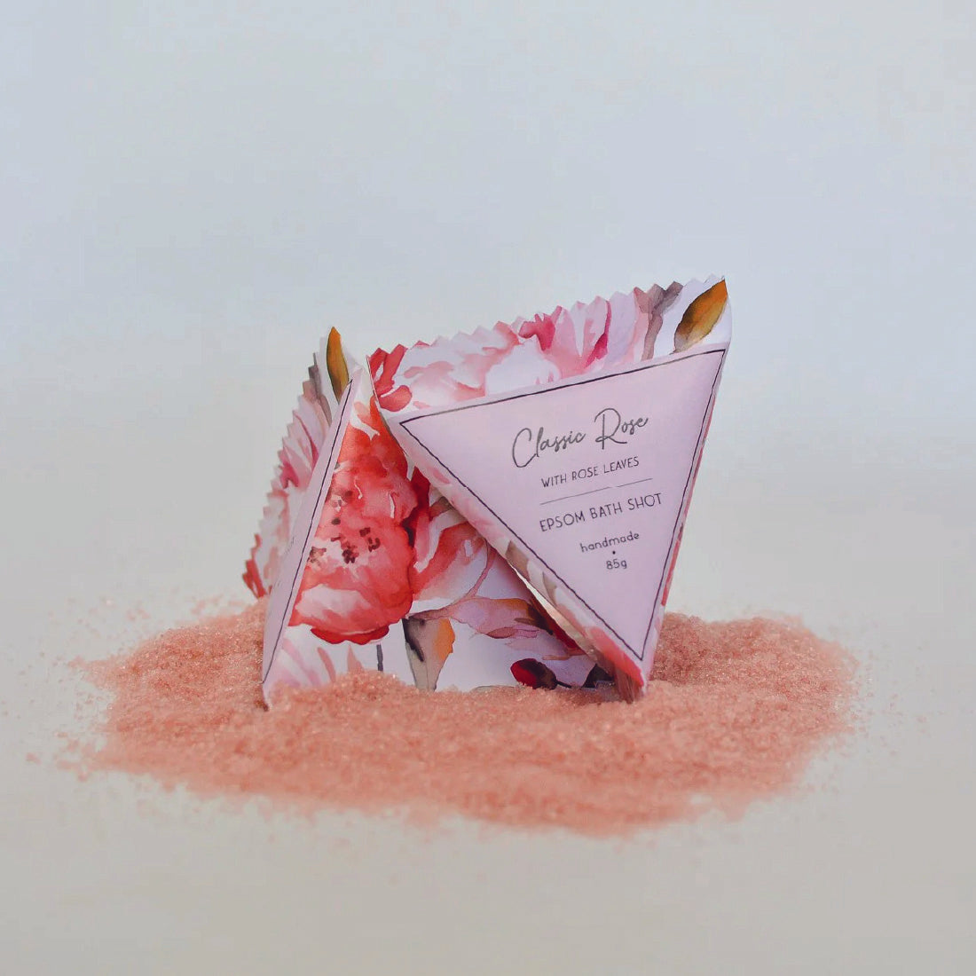 Delight in 85g of handcrafted Epsom salts infused with subtle fragrances and botanical leaves for a luxurious bathing experience.